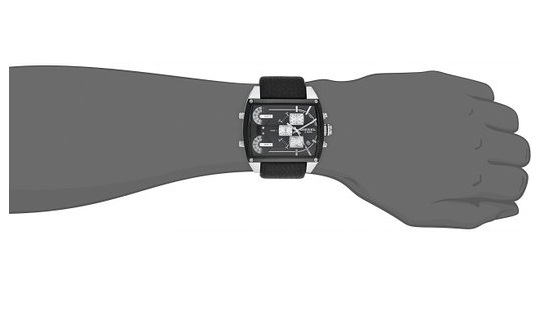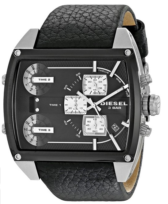 迪赛Diesel DZ7326 时尚男表,这款手表外形设计相当抢眼,方型表盘,表面设计跟传统手表差别很大,右半部分是三眼计时+指针刻度,而左半部分是两个计时器。采用石英机芯,30米防水,是一款很酷的时尚表!