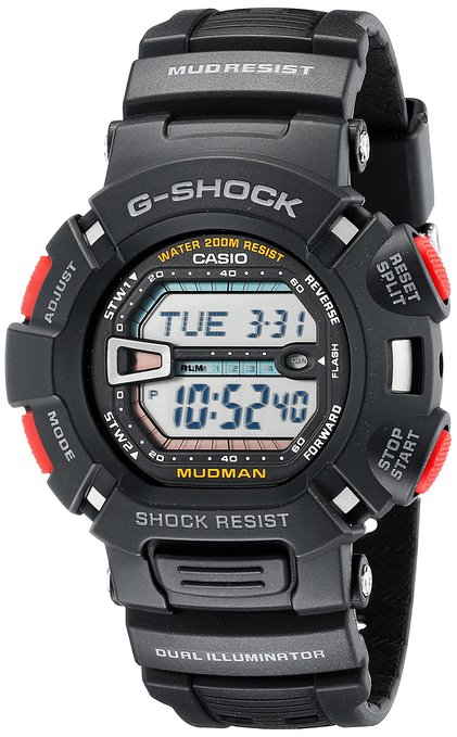 这款卡西欧G-Shock泥人系列男士户外腕表G9000-1V,具备过硬的防水防污抗震性能,还可以防磁和抗低温零下20度,防水深度也达到200米,在野外怎么摸爬滚打都不是压力了。另外带有LED背光、世界时间、秒表等功能,表径46mm。
