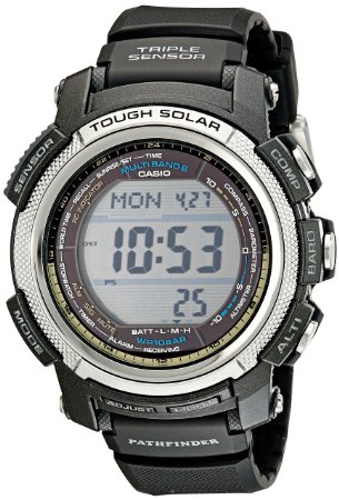这款CASIO 卡西欧 PAW2000-1CR 男士 探路者系列 太阳能 六局电波 多功能登山表,采用50mm树脂表盘,11.5mm超薄设计。日本原装石英机芯,防水100m。可接收全球6局电波,包括国内商丘站信号,达到“分秒不差”的精确走时。太阳能驱动系统、双重液晶显示。光动能技术,保证手表大多数功能的运行。坚韧的耐低温规格可抵抗摄氏-10°C的恶劣气候。还拥有卡西欧当家三重感应器:数字罗盘(方向感应器)、温度计(温度感应器)、高度计(压力感应器)。其他功能包括31时区(48城市)、城市代码显示、日光节约时间、城市代码显示、日出/日落时间显示、5组独立闹铃、全自动日历、夜间显示等功能。