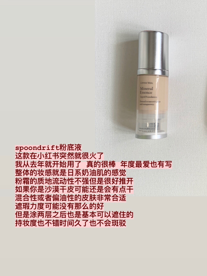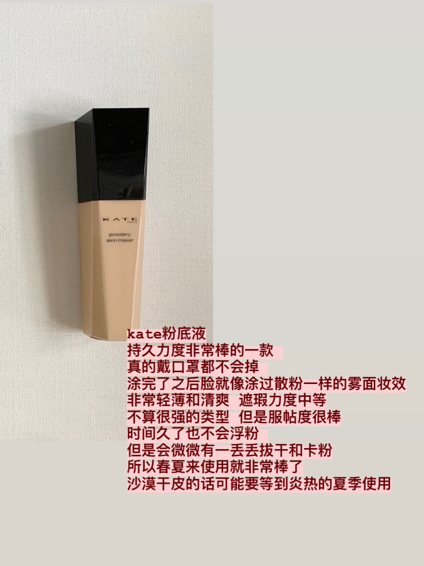 这只持久力度非常棒 戴口罩都不会脱妆 很干爽 像涂了散粉一样 遮瑕力度中等 时间久了妆效也很美丽 稍微有一丢丢拔干 更推荐给偏油的肤质春夏使用 干皮的话夏天也可以用