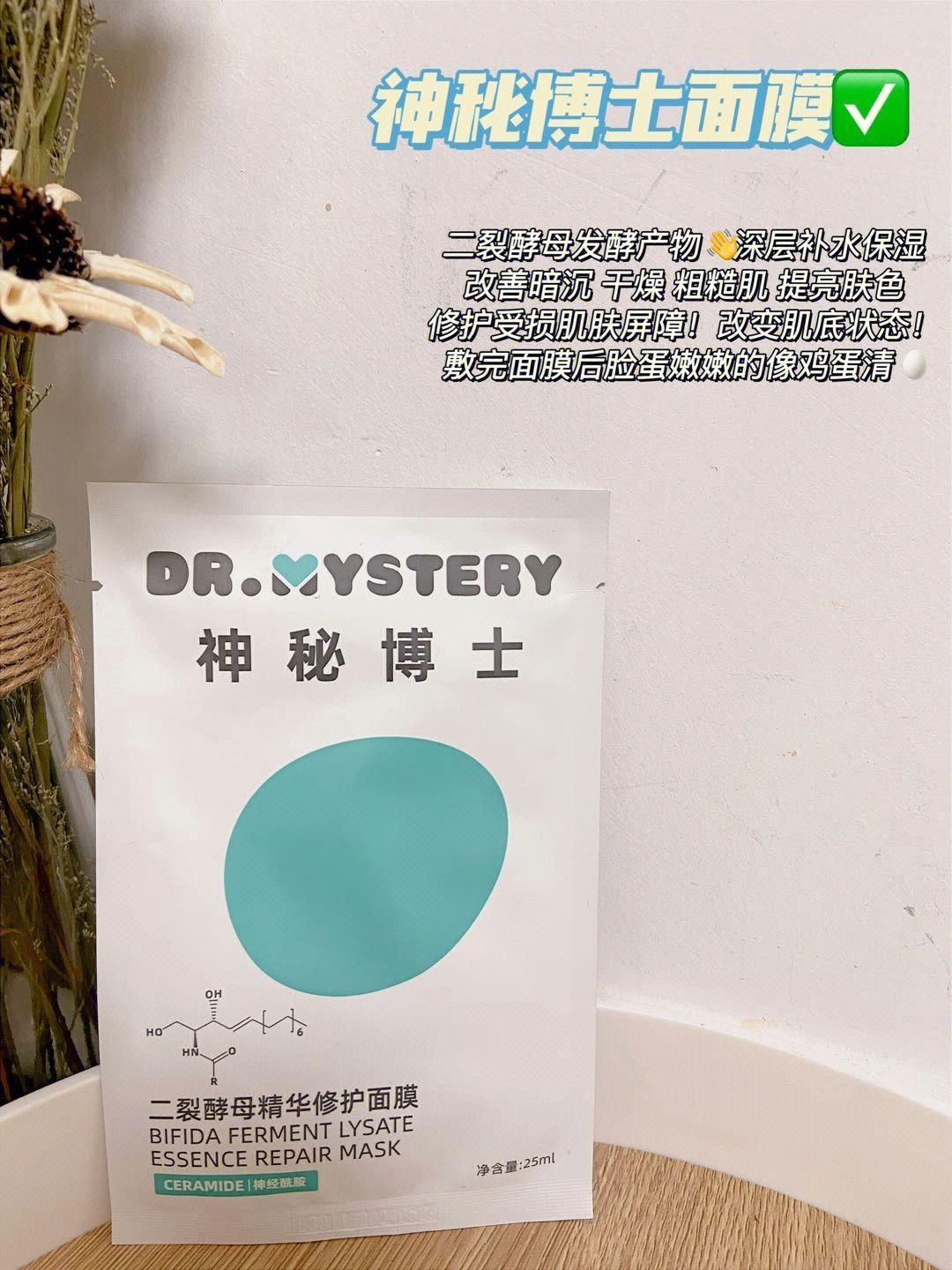 神秘博士面膜 这款主要成分为二裂酵母发酵产物 对肌肤暗沉 干燥 粗糙有一定的改善 提亮肤色 补水效果也在线