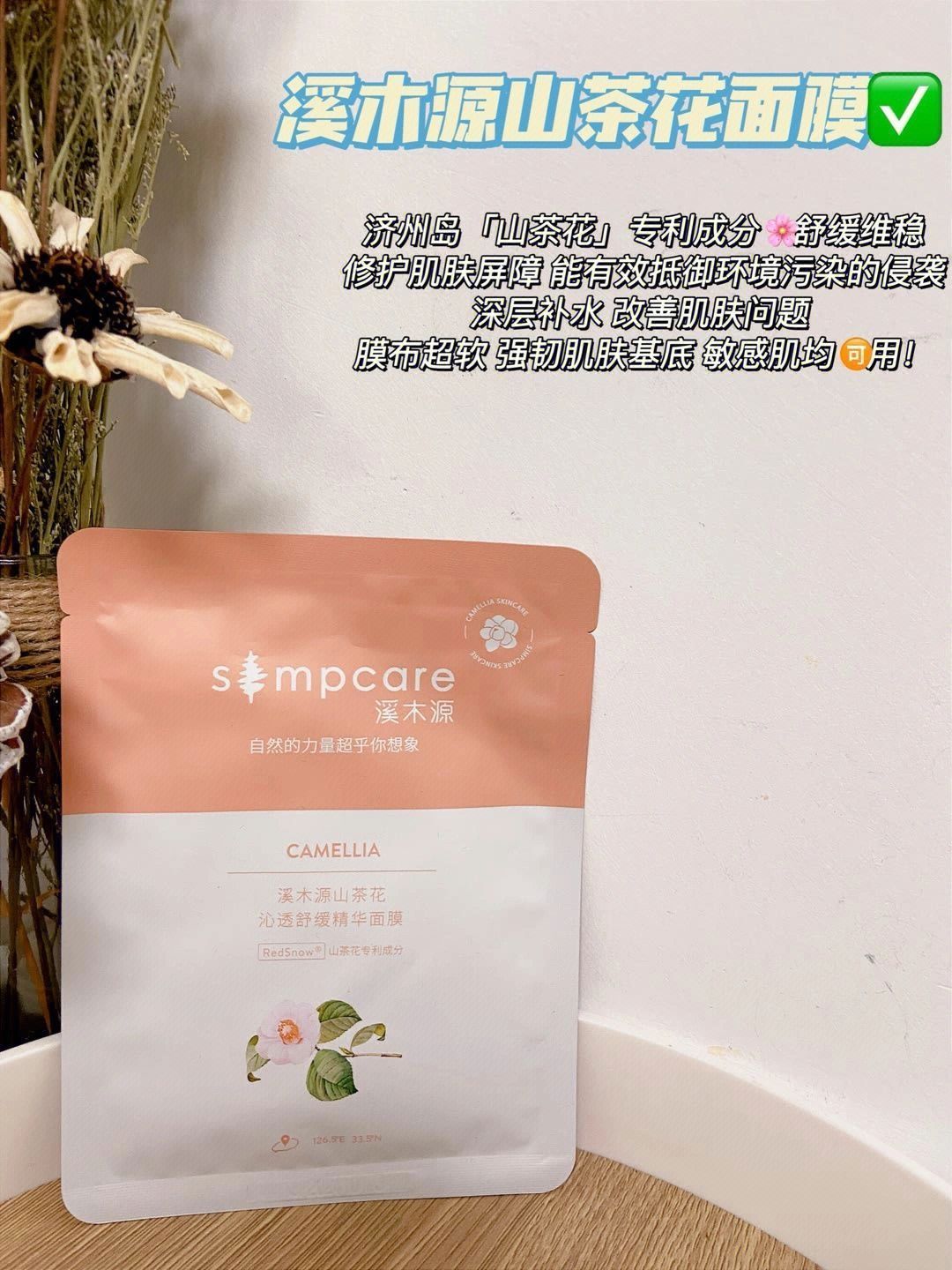 溪木源山茶花面膜 这款含有山茶花可以舒缓维稳 修复肌肤屏障肌肤屏障 这款膜布我很喜欢 平价不心疼 敏感肌也️