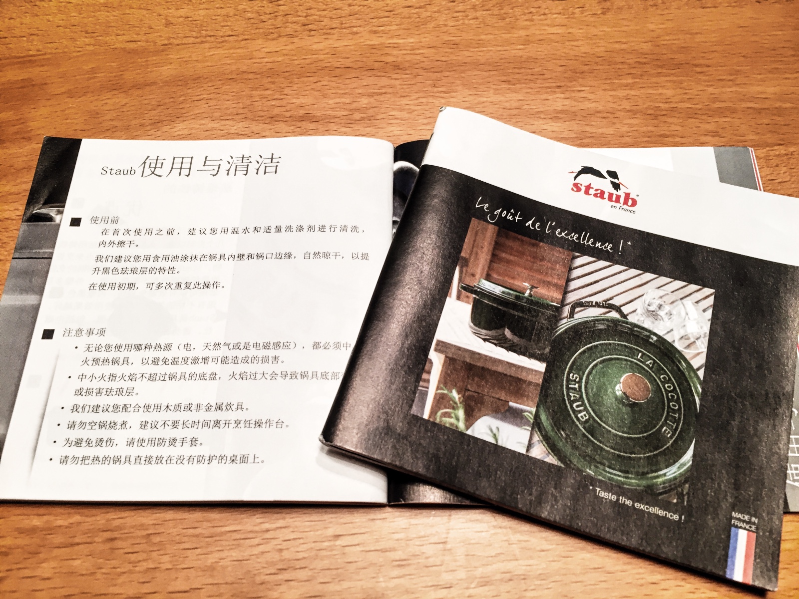 这次我要晒的是一款法国进口Staub珐琅铸铁锅22cm经典圆形炖锅,以下是她的开箱照及基本信息,她只是静静的躺在桌上,也是一件让人心动的艺术品,因为她被誉为法国国宝。