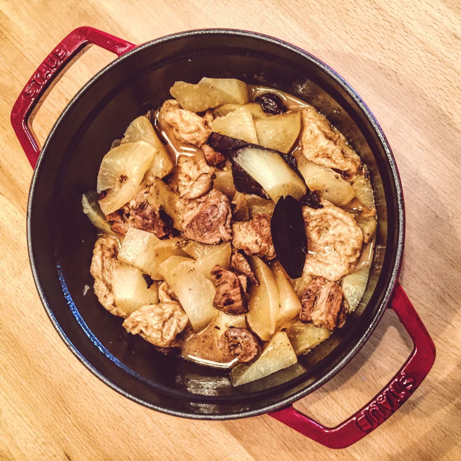 周中收到锅具,周末才有空试锅,做了两道菜,一是萝卜牛腩,一是芥末啤酒鸡,炖的牛腩烂和不渣,口感很棒,鸡也是一样,而且水分基本没有流失,从此我们更爱在家吃饭了!!!