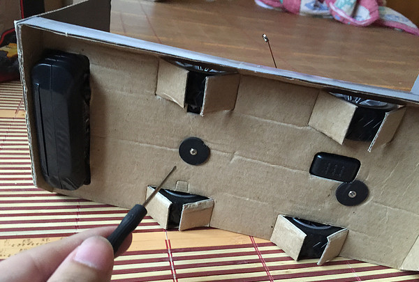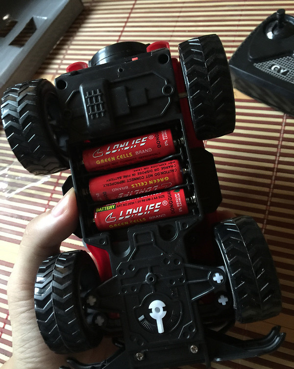 电池盖子也用了螺丝刀进行了固定,个人认为不是很好,换电池会不方便,另外,电池仓内需放置两粒五号电池~遥控车需要放3粒电池