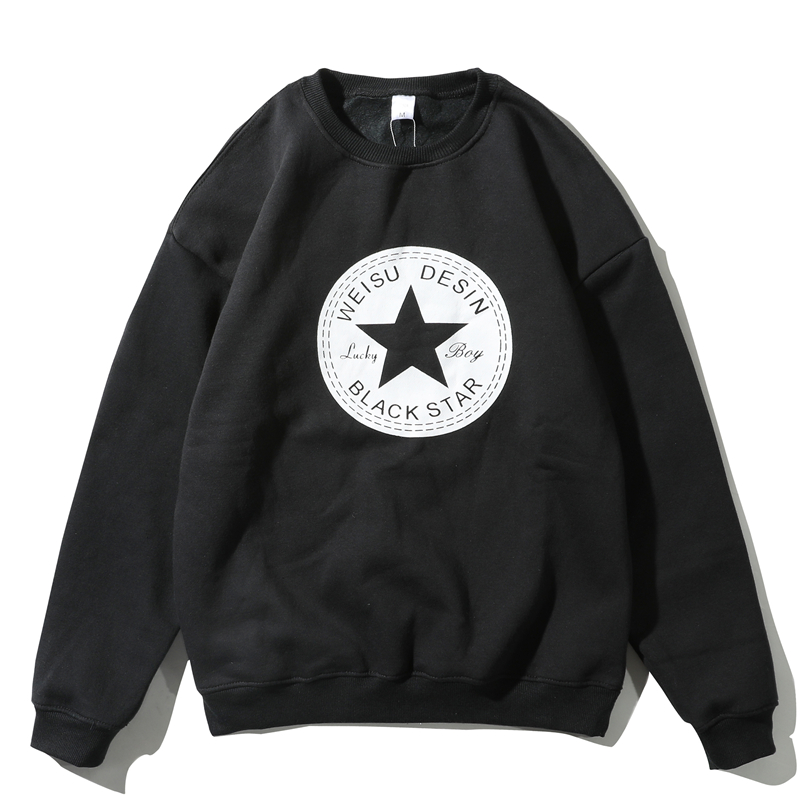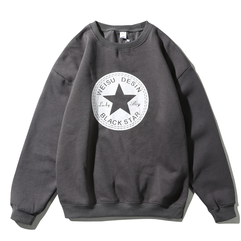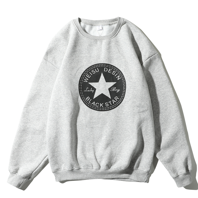 GODIUM 日系复古星标宽松圆领情侣卫衣