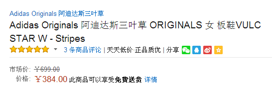 原价489元,目前亚马逊特价384元包邮,双色可选,历史新低,36-39码有货,同款淘宝440+,相比之下,亚马逊价格非常实惠,广大潮人不要犹豫了。