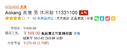 原价439元,目前亚马逊镇店之宝特价169元包邮,近期好价,同款淘宝199元,虽然不是历史最低,但低于淘宝的价格,而且尺码齐全,已经是可以入手的价位了,有需要的朋友们不要犹豫了。