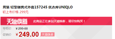 目前天猫商城售价249元包邮,持平历史最低价,两色可选,尺码从S到XL均有售;有买家评价衣服不错,属于皮肤风衣类型的,比较薄。