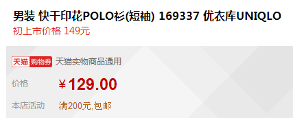 原价149元,目前天猫特价129元,需要邮费,历史新低,双色可选,尺码齐全,喜欢的朋友不要错过机会。
