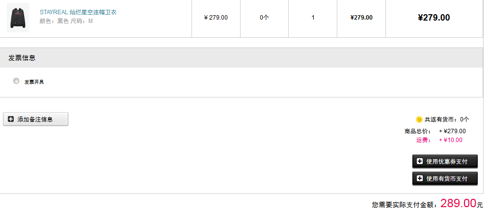 休闲潮流折扣 时尚保暖!STAYREAL 灿烂星空连帽卫衣 279元(需邮费,用券价更低)