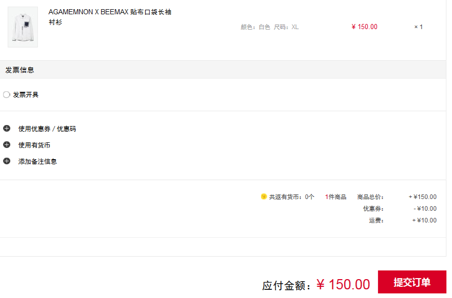 舒适休闲,亲肤有型!有货商城品牌优惠活动期间,这款AGAMEMNON X BEEMAX 贴布口袋长袖衬衫,价格十分不错,有喜欢的可以考虑下单!目前有货商城150元,邮费10元,使用识货10元新客优惠券,下单使用后立减,