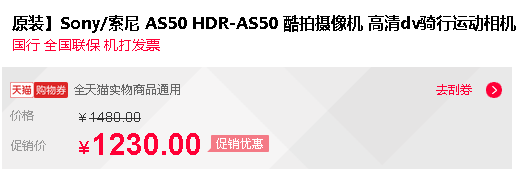 优惠精选 运动防水!Sony索尼AS50 HDR-AS50酷拍摄像机 1230元包邮