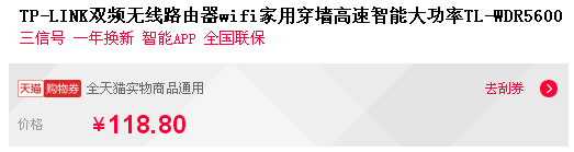 优惠精选 稳定双频!TP-LINK TL-WDR5600 11AC智能双频无线路由器 118.8元包邮