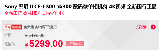 优惠精选 4K视频!Sony索尼ILCE-6300数码微单相机身 5299元包邮