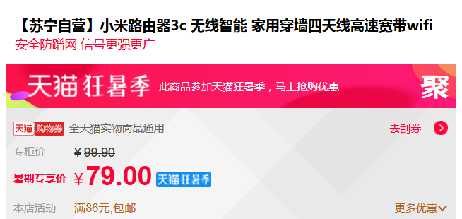 优惠精选 安全防蹭网!小米路由器3C 300M智能无线路由器 79元包邮