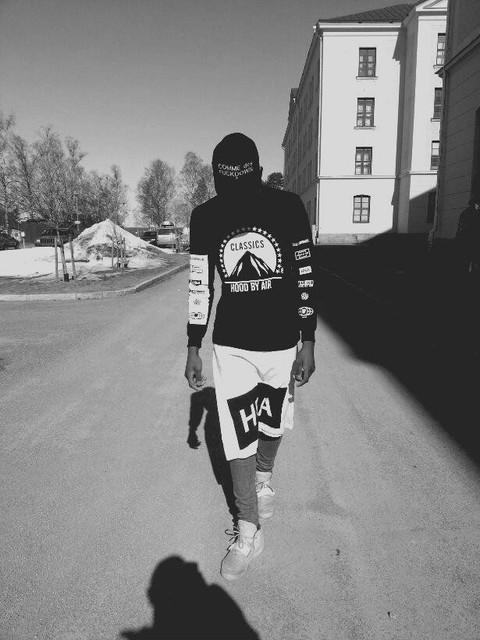 上身穿着T恤,或长袖卫衣,外套都可以,越舒适越好,街头要的就是这种随意!