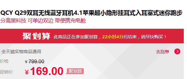 优惠精选 运动伴侣!QCY Q29真无线蓝牙耳机 169元包邮