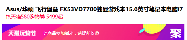 华硕飞行堡垒尊享版二代FX53VD外观充满游戏气息,有着很多与玩家国度ROG笔记本相同的设计元素,让人看上一眼就会认定这是一款游戏笔记本!原价6899元,天猫玩物节好价