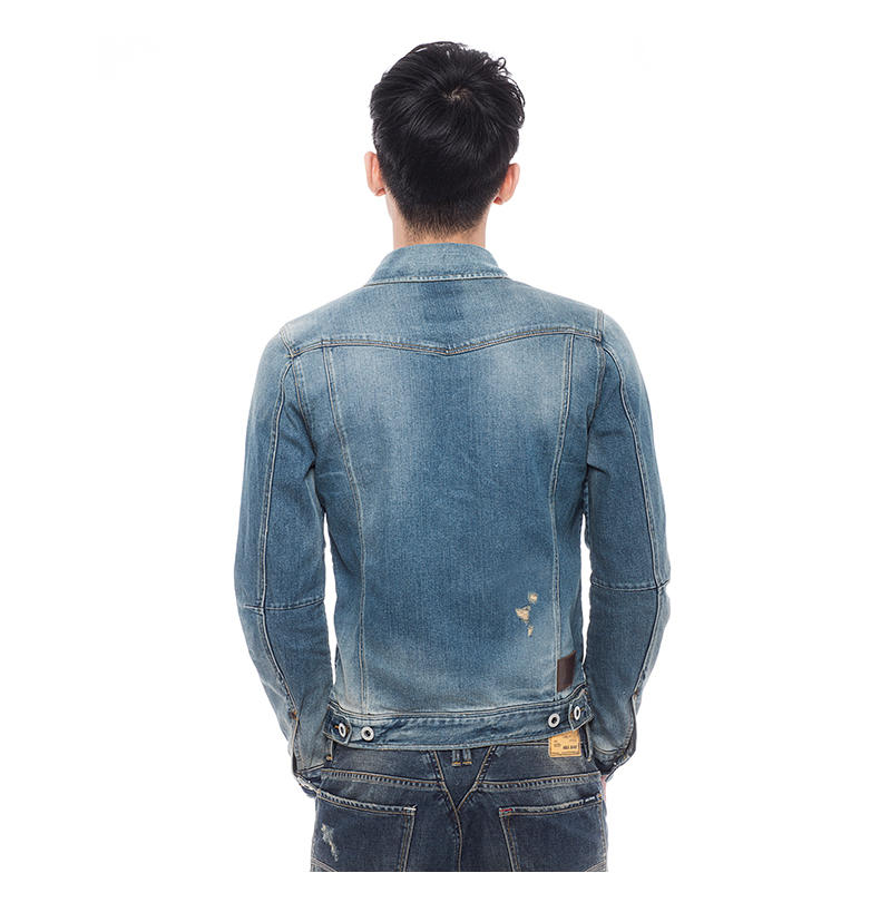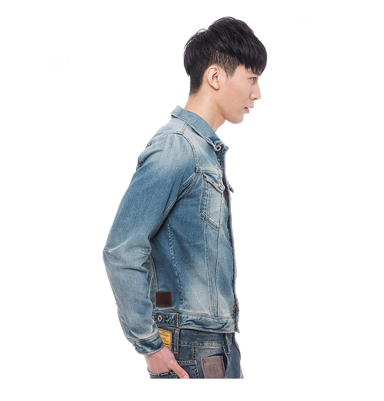 此款ABLE JEANS 春秋男士休闲潮款外套3D立体袖,采用专利版型技术,保证手肘,手臂弯曲举抬时无绷紧感,与手臂紧密切合。采用手洗磨白工艺,局部的石墨工艺和水洗相结合,视觉感良好,时尚复古。流畅自然的收身线使得服装上身效果更具层次感,腰部更修身。