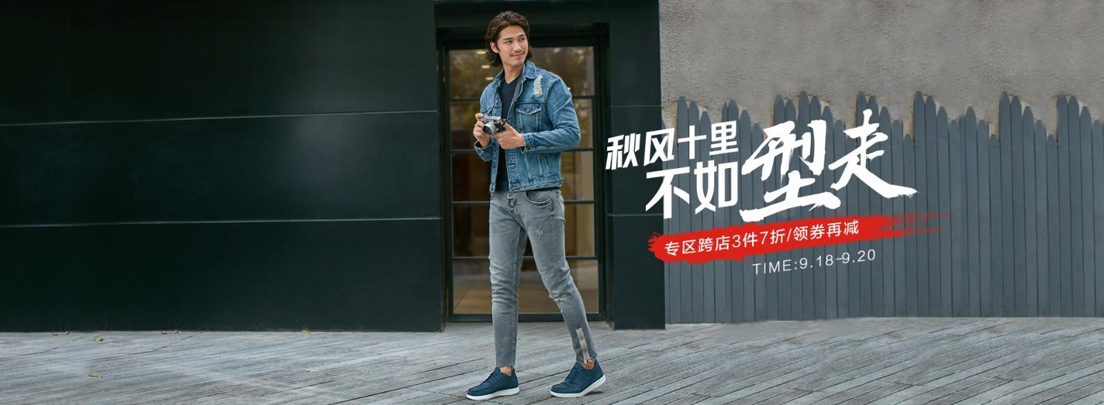 男鞋会场也是跨店铺3件7折,2件8折,可领购物券有