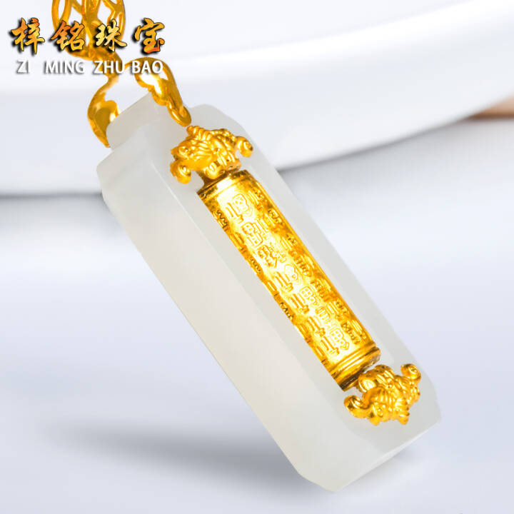 (3)梓铭珠宝 和田玉吊坠男黄金镶玉转运珠玉坠玉石挂件