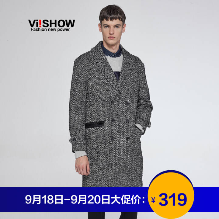 (1)VIISHOW冬季新款男士风衣中长款外套男潮拼接撞色时尚大衣