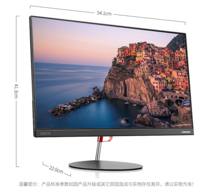 联想X24 23.8英寸纤薄超窄边框IPS屏显示器4使用23.8英寸IPS面板,7.5mm纤薄机身,可视角度178°/178°,屏幕比例16:9,分辨率1920×1080。面板亮度250cd/m2,响应时间7ms,对比度1000:1。带有一个HDMI和一个DP接口,窄边框设计。