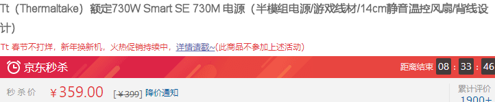 优惠精选 稳定高效!Thermaltake Smart SE 730M电源 359元包邮