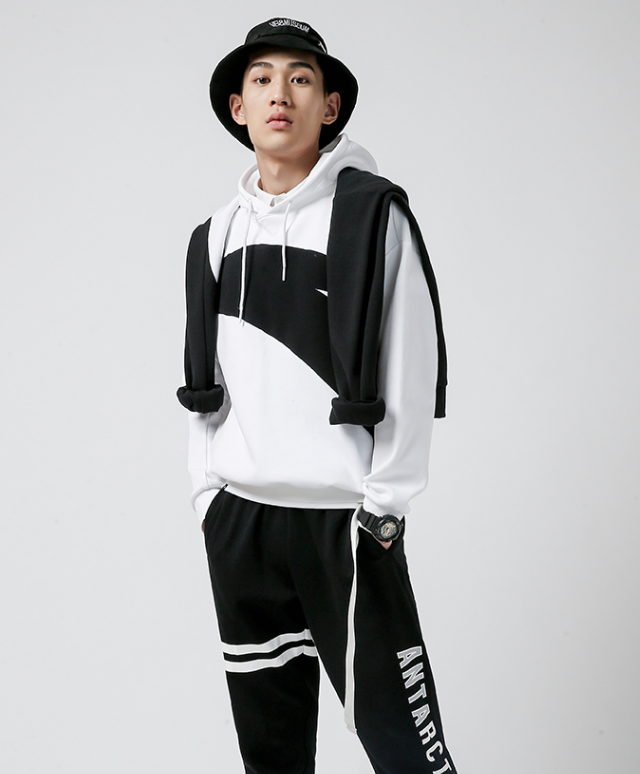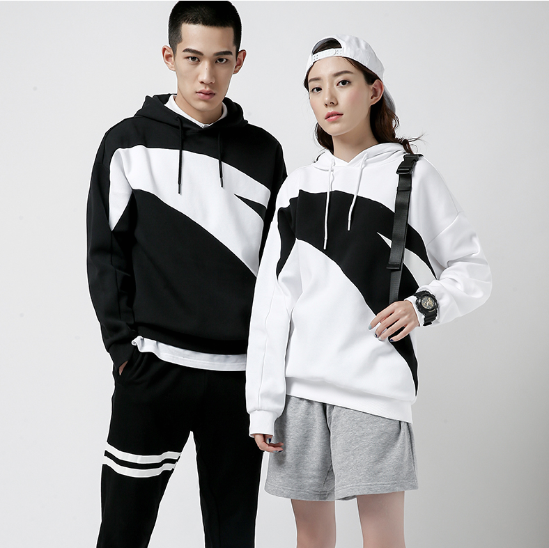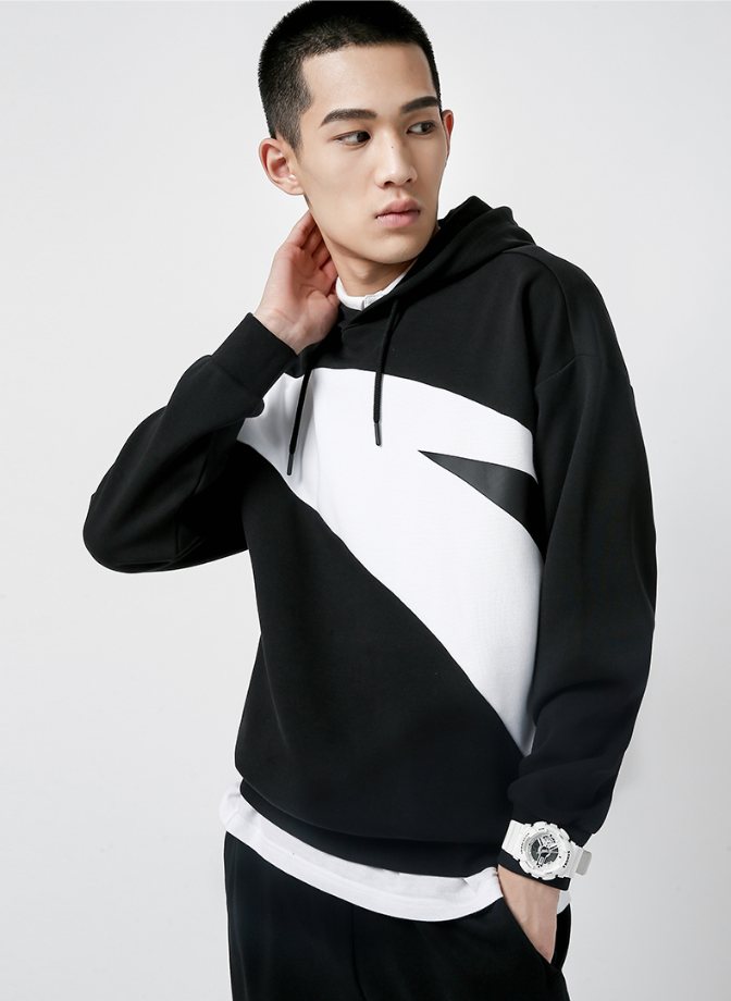 男女同款,撞色简约时尚,抽绳连帽设计。