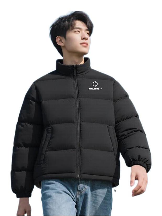 RIGORER 长款防风抗寒防泼水加厚冬训保暖聚热加绒连帽款过膝白鸭绒羽绒服 Z123411308 纯正黑