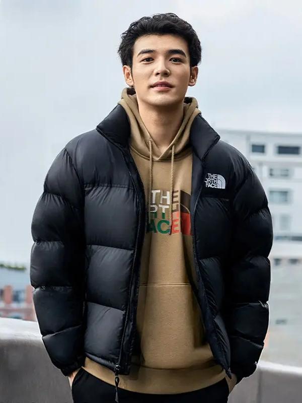 The North Face 1996/1992 NUPTSE 图案印花可收纳拼接豹纹可拆卸帽满印潮奢亮面色块高蓬羊皮卷绗缝连帽立领拉链防风防水防寒保暖700蓬鹅绒羽绒服 男女同款 美版/纯黑