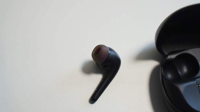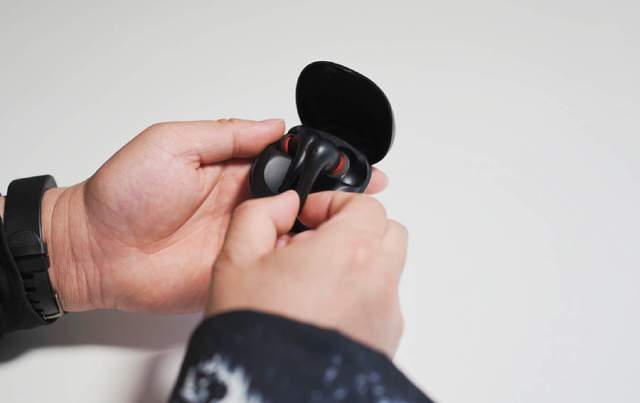 1MORE Aero 空间音频降噪耳机收纳仓边角圆润握持起来没有明显的棱角感,加之表面的亲肤质感涂层,手感温润舒适,耳机音腔部分也比较圆润,体积不是特别大,耳机的佩戴舒适度还是不错的,当然在产品包装里也随机提供了多幅不同大小的耳塞,便于根据个人需求进行更换。