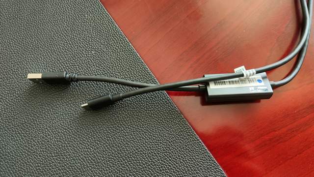 这条Smart Cable智能线缆,和普通数据线几乎一致,长度大约1.5m,一头是USB Type-A接口联接台式机、笔记本,另一头是USB Type-C用来联接另一台设备,简简单单实现跨设备、跨屏传输,极大提升工作效率。