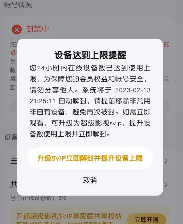 此前爱奇艺也被曝用户多个设备同时登录一个账号导致账号被封的情况,还一度登上热搜。