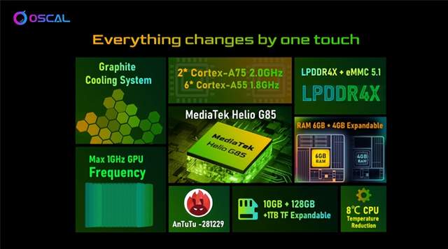 配置方面,新机搭载联发科Helio G85芯片,采用6.583英寸IPS屏,后置12MP+8MP+2MP三摄,支持NFC和双卡双待。