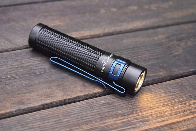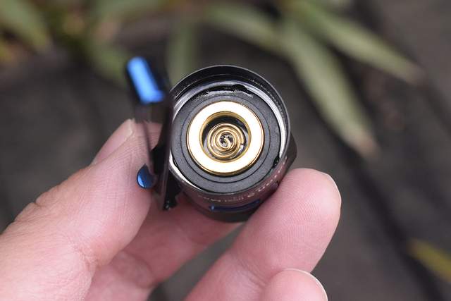 可以看到灯头压圈上印有色温标号,我这款为暖白(3000K-4000K),蓝色的压圈与同色双向抱夹和侧按圈环相匹配,为黑色筒身增添了一抹亮丽。前面说过,指挥家3 Pro Max共有三种色温可选,三色温中,除中白、冷白的最高亮度为2500流明外,暖白要略低一些,为2000流明,但也足以满足日常场景照明需求。