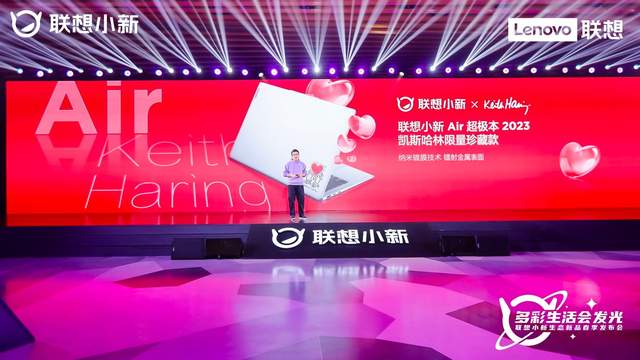 本次联想小新Air 14 2023还特别推出了与涂鸦大师凯斯哈林联名的全球限量珍藏款。纳米镀膜和七彩镭射工艺,让凯斯哈林的爱心系列作品在联想小新Air 14 2023金属表面,绽放出梦幻般的光芒。