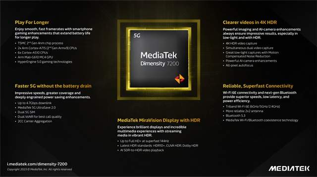 而基于不同定位的产品,手机厂商会也会选择搭载不同的芯片,让手机能够符合消费者的特定需求。今日联发科发布了一款全新的芯片——天玑7200移动平台,其具体参数如何,我们一起来了解一下。