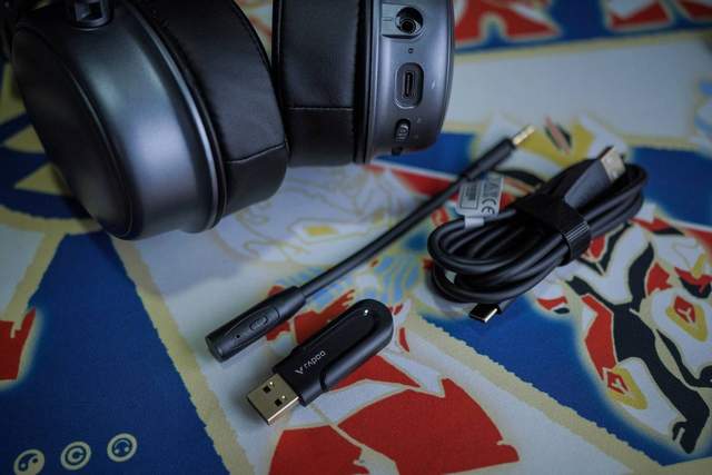 耳机的麦克风是可拆卸的,支持360度的旋转调节;它还内置了1200mAh的大电池,在不开启RGB灯效的情况下可以使用46小时,即便是灯效全开,也能够使用长达17小时。充电接口为USB-C,大约三小时可以充满。用了一段时间还没充过电,续航还是相当不错的。