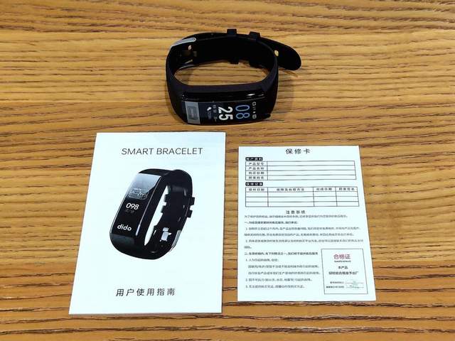 从智能手环包装内,取出所有物件后,可以发现dido R40S无创血糖智能手环的全家福十分简单,只拥有智能手环主体,以及《用户使用指南》和《保修卡》一共三样东西,就并没有其他配件了。