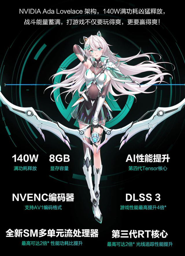 此次发布的游戏本新品全系搭载NVIDIA® GeForce RTX™ 40系列笔记本电脑GPU,其由更高效的NVIDIA Ada Lovelace架构提供动力支持,借助AI驱动的DLSS 3技术可实现性能质的飞跃。得益于全景光线追踪技术加持,缔造栩栩如生的虚拟世界。此外,Max-Q技术可优化系统性能、功耗、电池续航时间和音效,实现峰值效率。