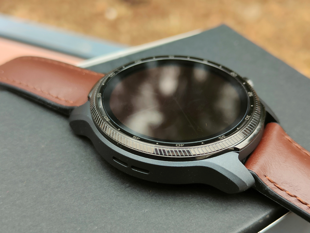 TicWatch PRO X 智能手表采用的是47mm表盘,皮质表带柔软,佩戴起来很舒适。屏幕是由两层显示屏构成,里面是一块1.39寸AMOLED屏,326PPI的分辨率和很多手机的一样。最外面一层是FSTN液晶屏,待机状态下显示的效果类似墨水屏,更加省电。