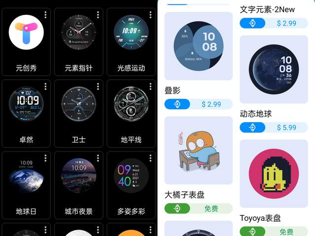 TicWatch PRO X最简单实用功能就是表盘切换,可以在Wera OS和出门问问App里进行更换表盘,Wera OS里的表盘偏重于经典商务,出门问问App的表盘则更时尚可爱一些。
