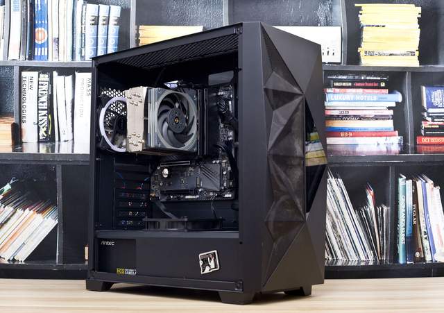 机箱方面,我使用了安钛克的DF700进行搭配。从外观设计来看,这款箱子的前面板是不规则的钻石切面,其中左半侧的部分是透风的散热网孔,颜值和散热都可以兼顾得到。