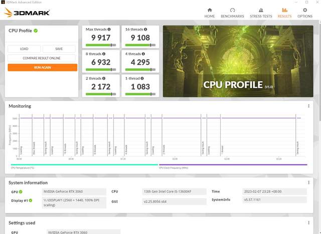 3DMark针对CPU性能所推出的CPU Profile项目,最终得分9917。