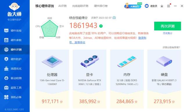 看完硬件整体之后,接下来就是进入测试部分,首先是鲁大师的信息一览。
