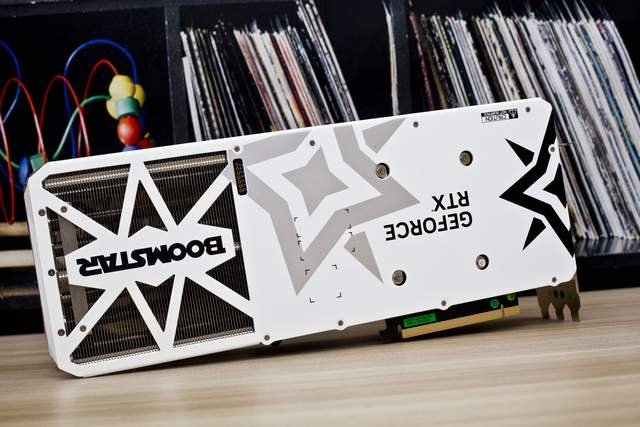 不得不说影驰RTX 4080 16G星曜OC的背板设计可以说个性化十足。采用一体压铸的金属背板,白色喷涂搭配星曜系列的logo标志,简洁美观。尾部大面积的镂空设计,能保证核心热量能迅速排出。