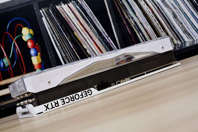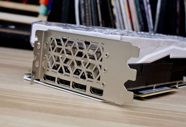三槽挡板可以看到此卡有多厚实。配备的输出接口为3个DP 1.4以及1个HDMI 2.1。