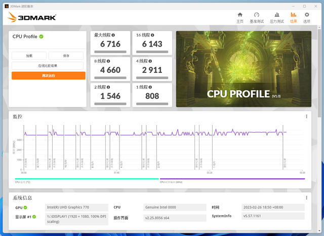 考核CPU性能的3DMark CPU Profile跑分测试结果: